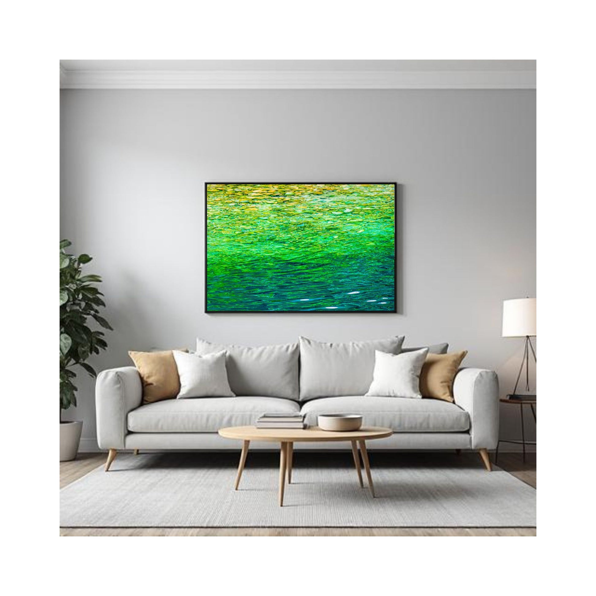Soft light, layered textures, and natural tones create a sense of balance and flow, making this piece easy to live with and endlessly calming. From a distance it reads as a gentle wash of colour; up close, the details of ripples and rock emerge, rewarding a slower look.