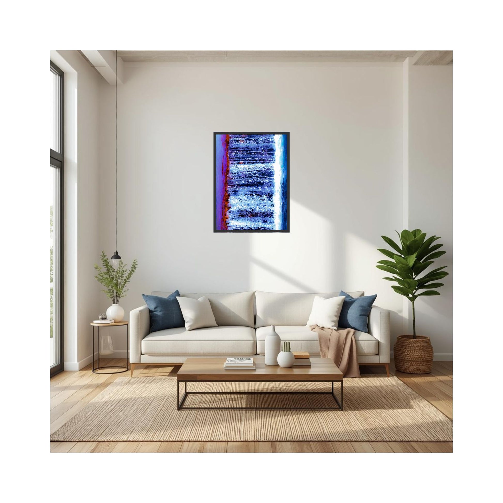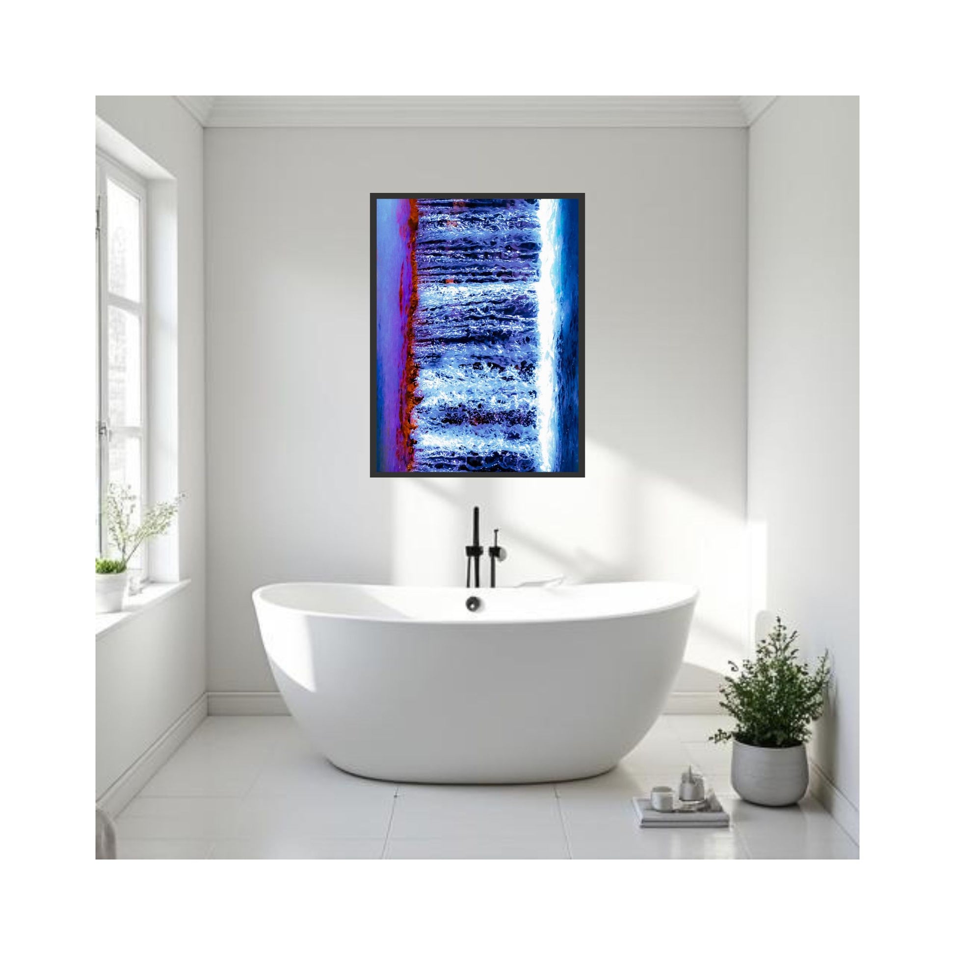 Captured at Fruit Bat Falls - Cape York, Australia, this piece explores the quiet power of moving water as it carves through ancient rock. It forms a naturally abstract composition of deep blues, indigo, and soft violet tones. The vertical flow creates a sense of calm and depth, making this piece both grounding and immersive for any space.